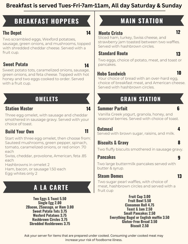 Tuesday-Thursday: 7-3 & Friday-Sunday: 8-3